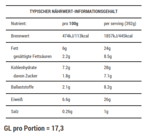 Nährwert: Eiweiß 21-30g, GL 16-21