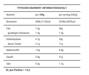 Nährwert: Eiweiß >30g, GL 11-15