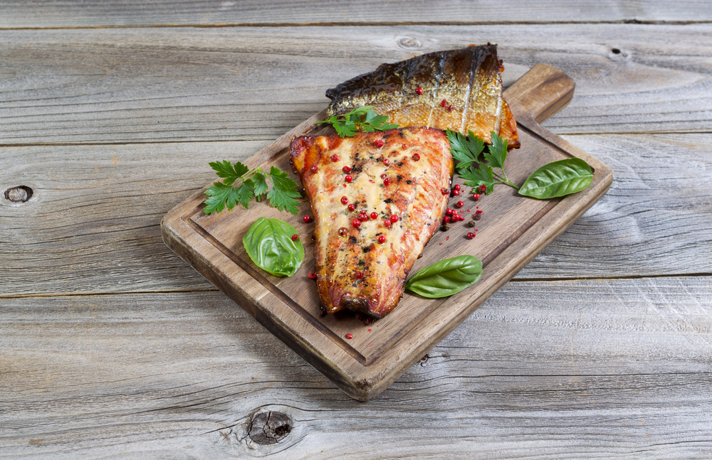 Geräuchertes Saiblingsfilet mit Kartoffelrösti und Salat