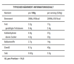 Nährwert: Eiweiß >30g, GL 16-21
