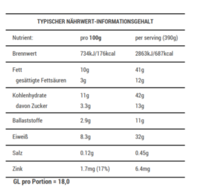 Nährwert: Eiweiß >30g, GL 16-21