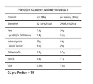 Nährwert: Eiweiß 10-14g, GL 16-21