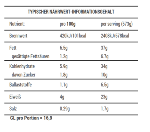 Nährwert: Eiweiß 21-30g, GL 16-21