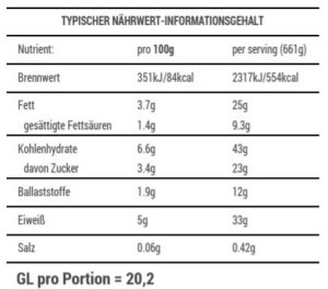 Nährwert: Eiweiß >30g, GL 16-21