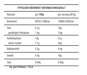 Nährwert: Eiweiß 10-14g, GL 16-21