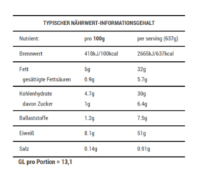 Nährwert: Eiweiß >30g, GL 11-15