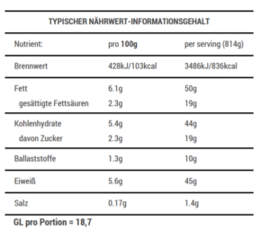 Nährwert: Eiweiß >30g, GL 16-21