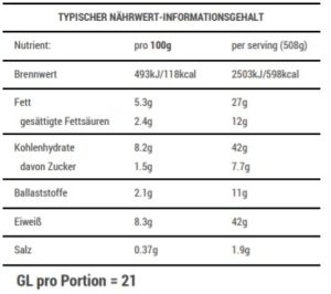 Ohne: Ohne Ei, Ohne Erdnüsse, Ohne Fisch, Ohne Hefe, Ohne Kerne, Ohne Krebstiere, Ohne Nüsse (Schalenfrüchte), Ohne Roggen, Ohne Schafmilch, Ohne Schwefeldioxid/Sulfite, Ohne Senf, Ohne Sesam, Ohne Soja, Ohne Weichtiere, Ohne Weizen, Ohne Ziegenmilch