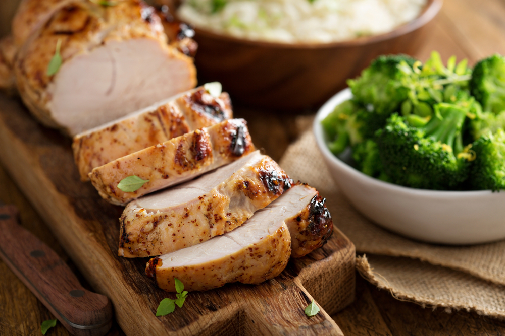 Gegrilltes Hühnerfilet mit Grünkern-Wurzelgemüse und Brokkoli