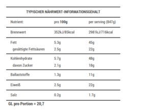 Nährwert: Eiweiß 21-30g, GL 16-21