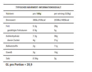 Nährwert: Eiweiß 15-20g, GL 16-21