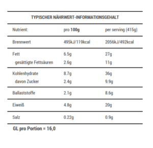 Nährwert: Eiweiß 15-20g, GL 16-21