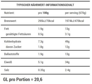 Ohne: Ohne Dinkel, Ohne Erdnüsse, Ohne Fisch, Ohne Gluten, Ohne Hefe, Ohne Kerne, Ohne Krebstiere, Ohne Kuhmilch, Ohne Nüsse (Schalenfrüchte), Ohne Roggen, Ohne Schafmilch, Ohne Schwefeldioxid/Sulfite, Ohne Senf, Ohne Sesam, Ohne Soja, Ohne Weichtiere, Ohne Weizen, Ohne Ziegenmilch