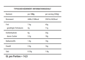Nährwert: Eiweiß 15-20g, GL 11-15