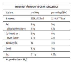 Nährwert: Eiweiß 15-20g, GL 16-21