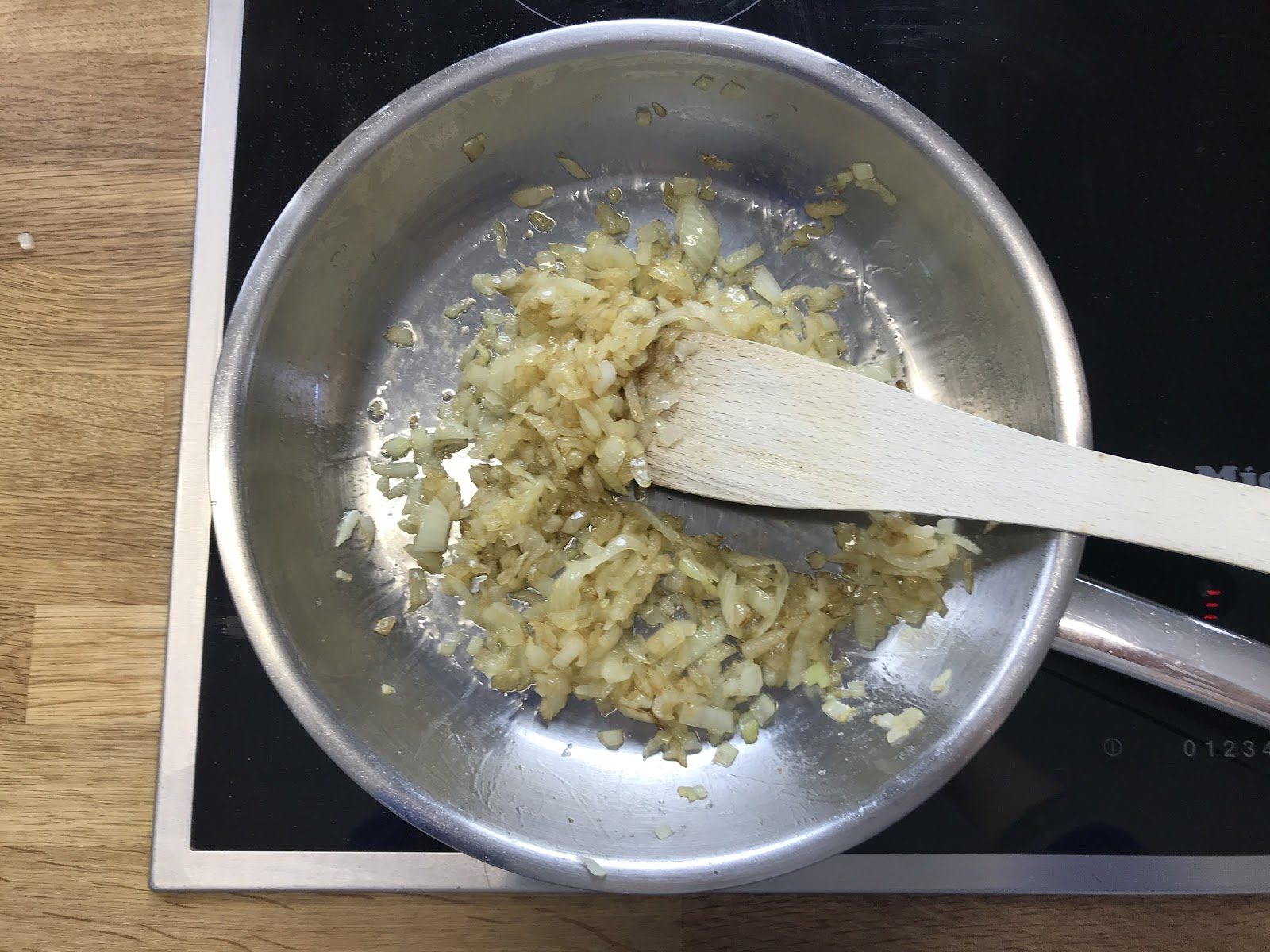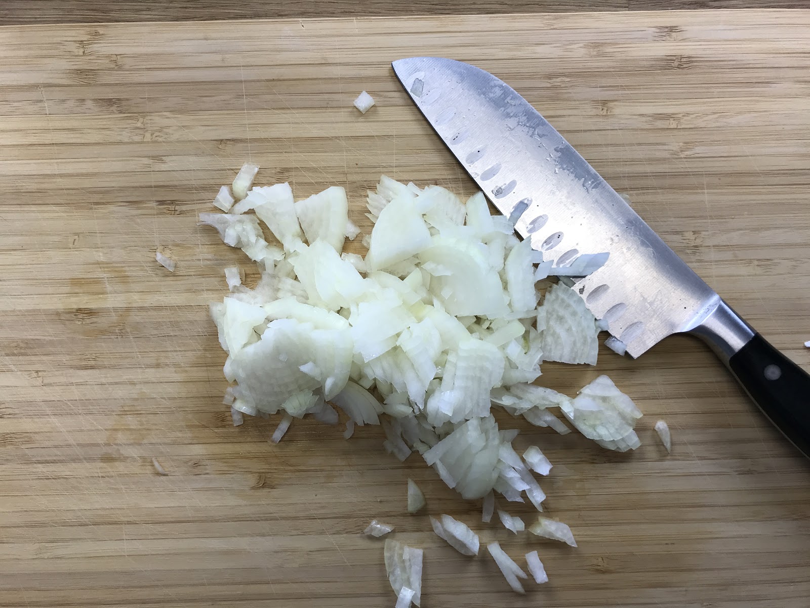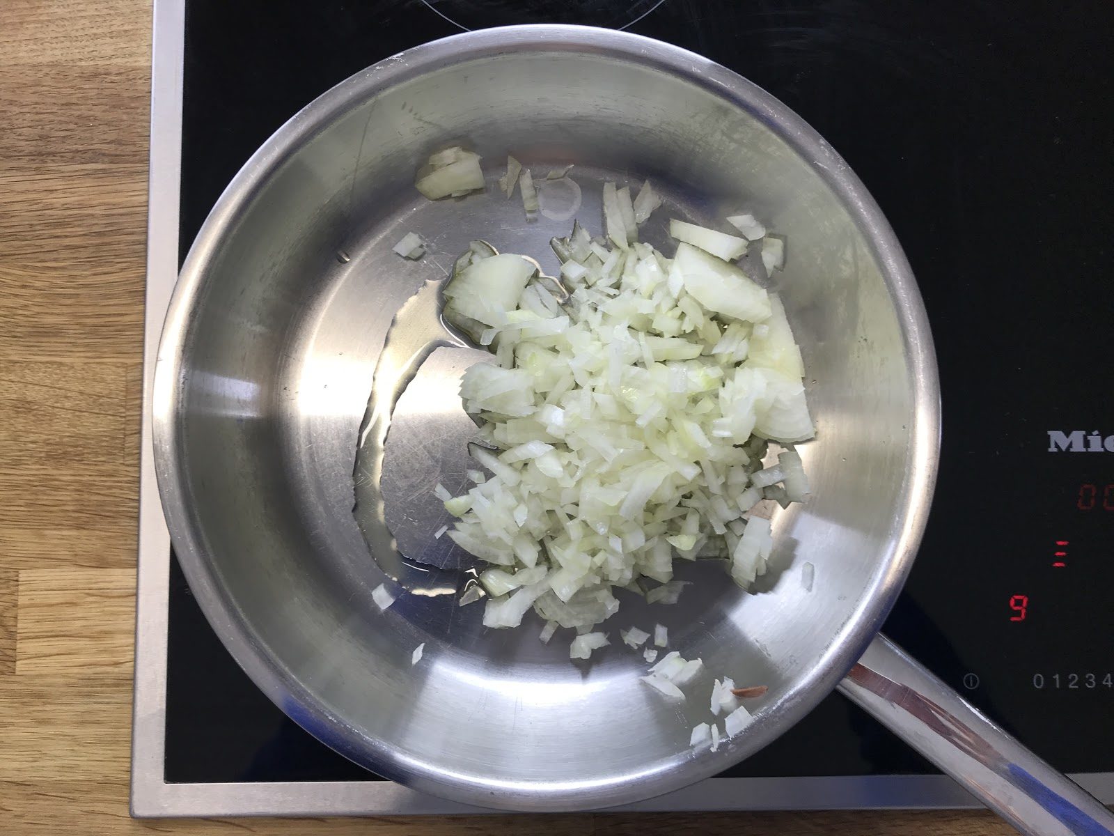 In der Zwischenzeit eine Zwiebel fein hacken: