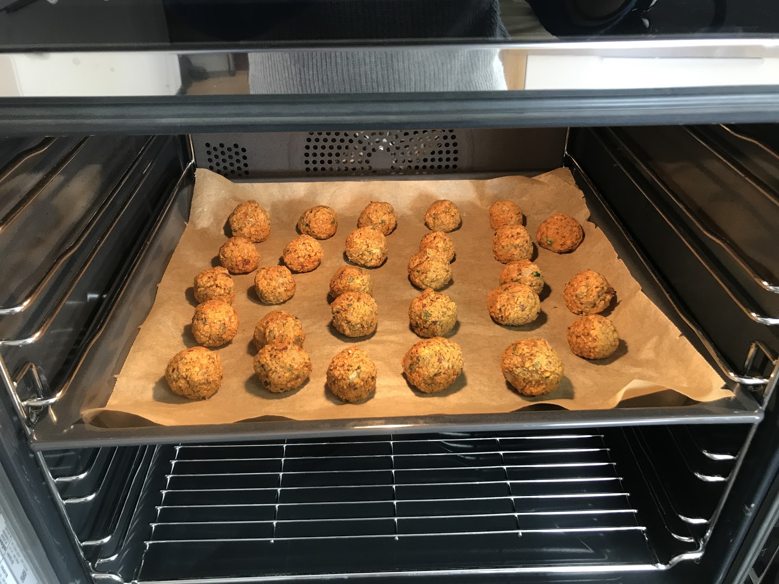 Die Bällchen werden dabei nicht braun, sondern sollen nur fester werden, damit man sie besser angreifen und transportieren kann: