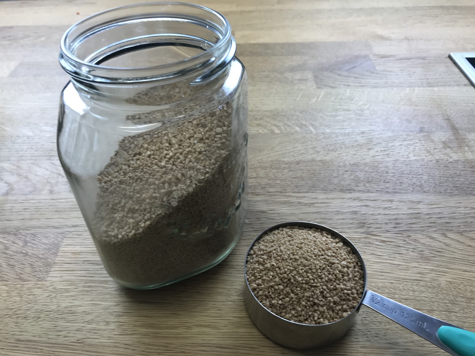 Couscous und Linsen verrühren und 30 Minuten stehen lassen (damit der Couscous die Flüssigkeit aufnehmen kann):