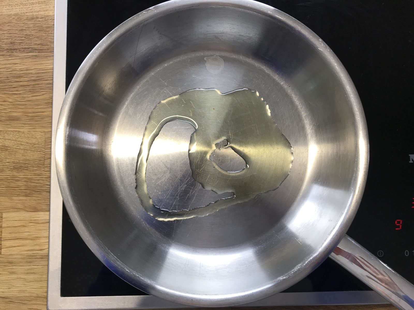 Olivenöl (“einmal um die Pfanne”) erhitzen: