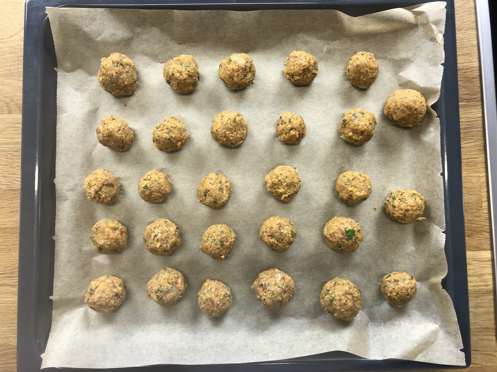 Linsenbällchen sind eine tolle Zwischenmahlzeit, die man gut vorbereiten und auch für unterwegs mitnehmen kann. Mit 2 Faustgrößen Gemüse, wie z.B. einem Blattsalat, eignen sie sich aber auch hervorragend als Hauptmahlzeit.