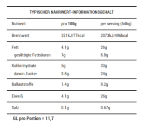 Nährwert: Eiweiß 21-30g, GL 11-15