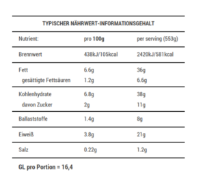 Nährwert: Eiweiß 21-30g, GL 16-21