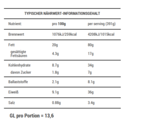 Ohne: Ohne Dinkel, Ohne Ei, Ohne Erdnüsse, Ohne Fisch, Ohne Gluten, Ohne Hefe, Ohne Krebstiere, Ohne Nüsse (Schalenfrüchte), Ohne Roggen, Ohne Schafmilch, Ohne Schwefeldioxid/Sulfite, Ohne Sellerie, Ohne Senf, Ohne Sesam, Ohne Soja, Ohne Weichtiere, Ohne Weizen, Ohne Ziegenmilch