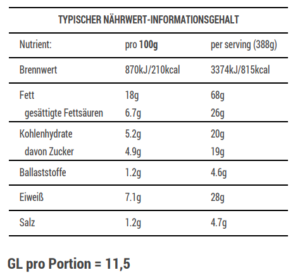 Nährwert: Eiweiß 15-20g, GL 11-15