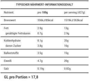 Nährwert: Eiweiß 15-20g, GL 16-21