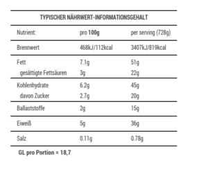 Nährwert: Eiweiß >30g, GL 16-21