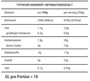 Nährwert: Eiweiß 21-30g, GL 5-10