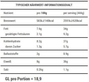 Nährwert: Eiweiß >30g, GL 16-21
