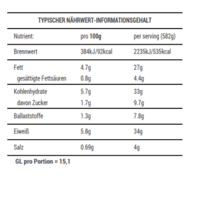 Nährwert: Eiweiß >30g, GL 11-15