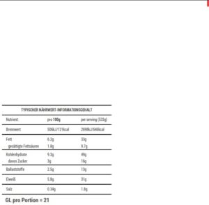 Ohne: Ohne Dinkel, Ohne Ei, Ohne Erdnüsse, Ohne Fisch, Ohne Gluten, Ohne Hefe, Ohne Kerne, Ohne Krebstiere, Ohne Nüsse (Schalenfrüchte), Ohne Roggen, Ohne Schafmilch, Ohne Schwefeldioxid/Sulfite, Ohne Sellerie, Ohne Senf, Ohne Soja, Ohne Weichtiere, Ohne Weizen, Ohne Ziegenmilch