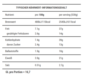 Nährwert: Eiweiß 15-20g, GL 16-21