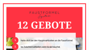 Wer das Faustformel System kennt, weiß, dass es bei uns vor allem darum geht, gesunde Ernährung möglichst einfach und alltagstauglich zu machen. Trotzdem brennen gerade Faustformel-Anfängern meist viele Fragen unter den Nägeln und sie wissen gar nicht so richtig, wo sie anfangen sollen. Deshalb haben wir die wichtigsten Prinzipien des Faustformel Systems in 12 Geboten zusammengefasst. So weiß man schnell, worauf man achten muss und was man getrost ignorieren kann und kann sofort ins Faustformel-Leben einsteigen. Aber auch für die “alten Hasen”, ist es nützlich, die wichtigsten Fragen ganz klar und kurz zusammengefasst jederzeit nachsehen zu können!