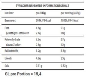 Nährwert: Eiweiß 21-30g, GL 11-15