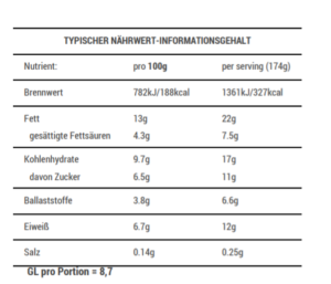 Nährwert: Eiweiß 10-14g, GL 5-10